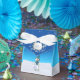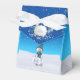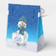 Package your gifts in style with this nice favor box. It features a lovely snowman standing in the snow, wearing a blue wool knit cap and a blue wool scarf and holding a white board where you can read "Let It Snow". Makes the ideal finishing touch for your gifts.