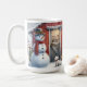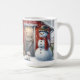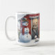 Let it snow! From the first snowfall to the last you will use and enjoy this charming snowy mug. White ceramic handle and interior with twin snowmen and a little Westie friend. A shed serves as a backdrop. This mug holds a nice 15 oz of your favorite hot drink and ceramic tends to keep it hot longer than glass or plastic. Dishwasher and microwave safe.