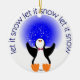 Bow tie penguin celebrates winter with Let It Snow slogan. Back is blank for your custom image or text.