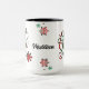 Festive Christmas mug featuring the phrase "Let it snow" and snowflakes in a plaid pattern. The name on the front of the mug can be customized with the name of the recipient.