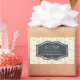 A festive sticker which says: let it Snow, Seasons Greetings, with your custom name. The background is a pattern with pink and blue snowflakes on a cream colored background. The center has a whimsical hand drawn banner, inside you can personalize the text.