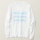 I love this shirt. I had written to the artist asking her if this picture was available on a shirt, and she wrote me back telling me where I could find the shirt. These shirts can be custom made to have a different saying. I loved this saying and went with it. The artist wrote me back later to tell me that she had seen my order go through. How's that for service? Pretty special. It's just as displayed. Perfect!