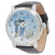 This festive Let It Snow Snowman Watch features a snow scene background with falling snow, snow covered pine trees, a child on a stool putting the finishing touches on his snowman. The child is dressed in blue and the snowman has a blue scarf and black top hat. There is a reindeer looking on by the pine trees. Snow covered blue text is Let It Snow! The watch numbers can be deleted, if you prefer your watch without them. Perfect for wearing this Holiday season or all winter long! Also makes a great Christmas gift. Choose the style and color of your watch! Styles for men, women and children. We have matching necklaces, scarves and neckties. Delete the watch numbers; Click Customize - Click on the "X" next to the clock numbers.