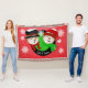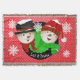 Let it Snow Snowmen holiday tree skirt features a beautiful design featuring a red background with white polka dots, a black ring, green center with white polka dots, snowflakes of white, a cute snowman couple with red and green top hat, winter hat, and scarves, and white text that reads Let it Snow! You can easily change the text to a name if you prefer!