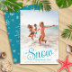 “Let it snow (somewhere else).” A fun, humorous quote with playful, whimsical turquoise typography, faux gold foil snowflakes, and your personal message/name/year overlay the photo of your choice. A faux gold snowflake pattern and your personal message in white overlay turquoise blue on the back. Usher in the holiday season, as well as brag to your snowbound friends, with this funny, bold, upbeat, graphic greeting card. Customize with your personal greeting and photo of your choice. Send this to someone special!
