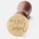 Before the wax hardens, gently and evenly press the wax seal stamp into the melted wax, ensuring it's centered.