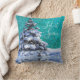 Snow laden evergreen in the snowfall. Says"Let it snow". Colors in turquoise, blues, green and white.