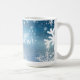 My original artwork consisting of a snow scene with graphic snowflakes edging the border is featured on this pretty winter cup. Images were processed in a painterly style in blue winter tones. The cup has the words "Let It Snow!" on it for a fun winter weather style. These are 15-ounce mugs, just the perfect size for your home brewed coffee or tea - or even hot chocolate! It would make a great gift and you can put packets of coffee, tea bags or hot chocolate inside - or a little plant - to make it extra special for your loved one. You can add text if you like! For winter, Christmas and cabin living.