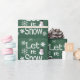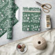 Super cute wrapping paper has a green faux linen design with white snowflakes and the words "Let it Snow" on it. There is also a cute snowman in the design.