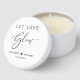 Elegant keepsake mini candles for your wedding favors featuring "Let Love Glow" in simple typography and a chic modern script, your first names joined together by a heart and your wedding date.