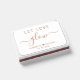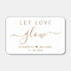 Chic wedding favor matchboxes featuring "Let Love Glow" in simple gold typography and an elegant gold script with swashes, your first names joined together by a heart and your wedding date.