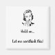 This funny magnet features a retro illustration of a woman deep in thought and the words, "Hold on...Let me overthink this!"