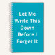 Let Me Write This Down Before I Forget It Notebook