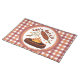 Purchased for a sister who throws Halloween block parties. Even with all the other stuff she has for this, I know she does not have this Exact one. Yeah personalization! Placemat has nice heft and is seamed around the edges well. Purchase complementary items too. Print is clear and well centered.