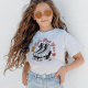 The T-shirt design features a retro-inspired illustration of roller skates decorated with playful floral patterns, surrounded by cheerful daisies and vibrant pink sparkles. Above the skates, the phrase "Let's Roll Girls" is written in a fun, vintage-style pink script, adding a motivating and lively vibe. The design combines shades of pink, yellow, and black on a clean white background, giving it a bold yet feminine look.