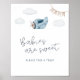 Celebrate the mom-to-be with this blue and tan vintage travel themed baby shower 'Babies are sweet' sign featuring a watercolor illustration of a cute airplane with clouds and a garland.