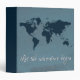 Let the adventure begin text design with world map decoration on grunge, blue background