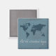 Let the adventure begin text design with world map decoration on grunge, blue background