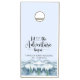 Let the adventure begin rustic watercolor forest newlyweds corn hole set in blue green hues and a calligraphy script "let the adventure begin" saying. Trendy woodland rustic style. Blue background.