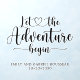 Let the adventure begin wall decal for weddings. A stylish calligraphy script with heart in the middle joining the words together. A perfect style for your wedding, bridal shower, bachelorette party, or bachelor party backdrop decal.