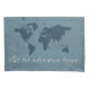Let the adventure begin text design with world map decoration on grunge, blue background