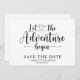 Simple modern trendy script typography let the adventure begin save the date announcement to customize for your wedding. Let the adventure begin theme.