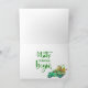 This Let the Shenanigans Begin St. Patrick's Day Holiday Card features a truck full of Irish Gnomes driving, through the backwoods with a full moon, celebrating St. Patrick's Day. - by Irish Gear and Gifts