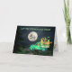 This Let the Shenanigans Begin St. Patrick's Day Holiday Card features a truck full of Irish Gnomes driving, through the backwoods with a full moon, celebrating St. Patrick's Day. - by Irish Gear and Gifts