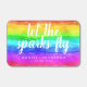 LET THE SPARKS FLY fun quote is featured on these and wedding matchboxes. The simple design features the quote in a white script typography on a watercolor rainbow background. Personalize with your names and wedding date.
