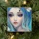 Christmas ornament. Pretty ethereal fairy tale art girl with flowers in her blue hair and quote on back of coffee mug. Ai art. generativecontent