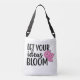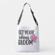 This crossbody bag features an inspirational quote "Let Your Ideas Bloom" and 3 pink flowers.