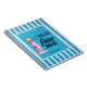 Inspiration themed spiral notebook. Designed with a watercolor image of a red striped lighthouse. With typography which reads: Let your light shine bright. Set on a blue striped pattern with a blue watercolor frame layered over top. The word "inspiration" can be changed to suit your needs such as a name or other title.