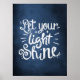 Let Your Light Shine Quote Navy Blue Poster