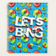 Green, blue and red let's bang, disc golf pun notebook. Cool grunge distressed text with a disc gold background and a disc golf basket inside the text.