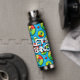 Green, blue and red let's bang, disc golf pun water bottle. Cool grunge distressed text with a disc gold background and a disc golf basket inside the text.
