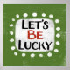 "Let's Be Lucky" is a cute text design with a white accent shape surrounded by white textured whimsical dots.