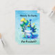 Blue and green Axolotl themed boy's birthday party invitations. A cute axolotl in a birthday hat with balloons.