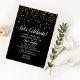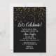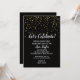 Lets Celebrate Gold Confetti on Black Bachelorette Invitation