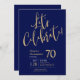 Let's Celebrate Navy Blue Gold 70th Birthday Party Invitation