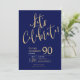 Let's Celebrate Navy Blue Gold Photo 90th Birthday Invitation