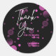 A modern, stylish and glamorous thank-you sticker. This design features a vibrant typography "Thank You" with pink gradient bokeh on a black background. Personalize it with your text.