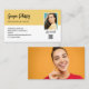 White, black, and yellow business card for any profession with your QR code, profile photo and, on the back, another photo. Content creator business card with a charming brush script, yellow accent color, and your QR code.