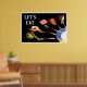 This poster was created from one of my original photographs. The poster features succulent foods on silver Oneida forks that are coming out of the side of a Mikasa currents pattern china plate. The text "Let's Eat" was added to the upper lefthand corner. This is an awesome semi-gloss poster for the kitchen or the dining room. A framed paper poster would also be a good choice for an upscale/modern restaurant. (note the white border is left for framing, you may edit to remove with the fill option)