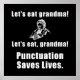 Let�s eat, grandma! Thank goodness for commas. The use of punctuation can save lives! Check out this funny custom design on tees, shirts, mugs, pajamas, gifts and other apparel.