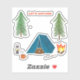 Fun camping stickers with a bear and his Raccoon eye masking sleeping in a pitched tent. You can customize the words with a click of a button.
