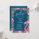 Let's Flamingle Navy Blue Tropical Floral Birthday Invitation