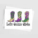 This invites feature three sparkly purple, gold and green cowgirl boots with the caption "Let's Geaux Girls", perfect for a New Orleans girls trip or Mardi Gras themed bachelorette party.