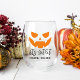 Personalize these spooky stemless glasses to create a perfect Halloween party favor. Design features an orange jack o'lantern face with two lines of custom text beneath; shown with "let's get lit" and your Halloween party name and year.