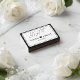 Below the main message, you can easily personalize the matchbox with the names of the couple and your wedding date. A small heart icon sits between the names, adding a sweet, romantic detail to the contemporary layout. These custom matches are a practical and stylish keepsake, perfect for wedding welcome bags, cigar bars, or sparkler send-offs.
