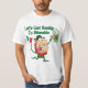 A funny cartoon of an Irish leprechaun carrying a pint of green beer and waving an Irish flag with the caption Let's Get Ready To Stumble.